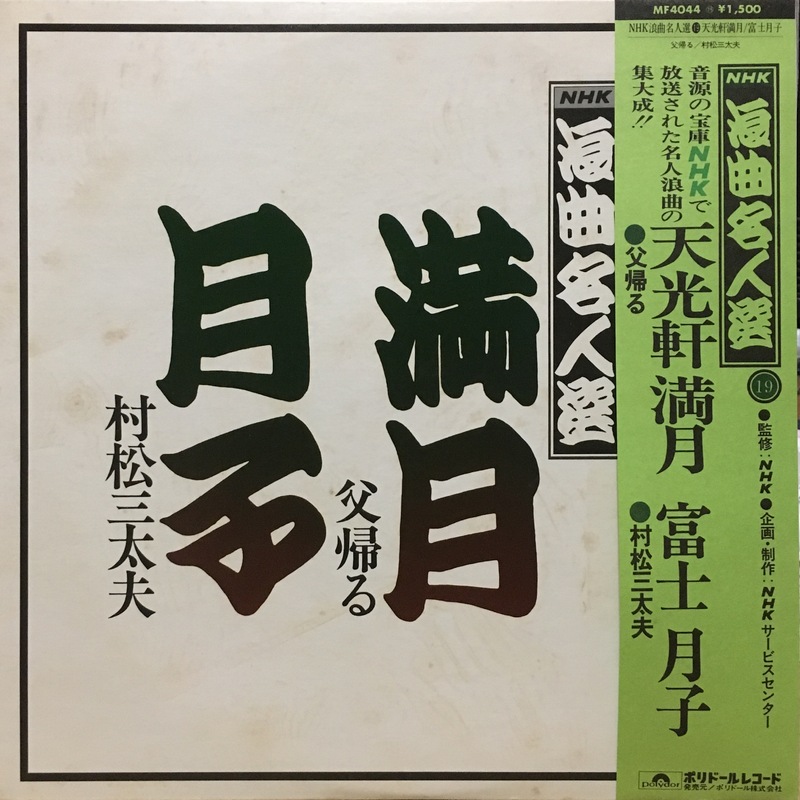 | NHK浪曲名人選19 | 父帰る/村松三太夫 | 三代目天光軒満月/冨士月子 | 田中百合子/中村菊夫 | ポリドール | LP | MF4044 | 1 | - | 所蔵 | 未デジタル化 | 詳細 | ||