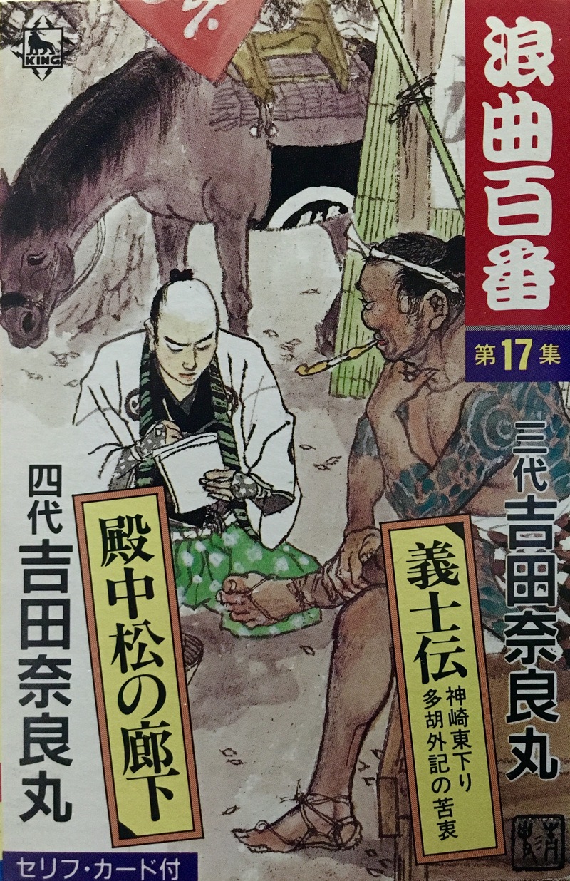 | 浪曲百番 第17集 | 義士伝 神崎東下り/多胡外記の苦衷/殿中松の廊下 | 三代目吉田奈良丸/四代目吉田奈良丸 | 東家菊栄/東家菊栄/木村喜代子 | 不詳/脚色:畑喜代司/脚色:住田八三嘉 | キング | カセット | K20H 5307 | 1 | 1986 | 所蔵 | 未デジタル化 | 詳細 | |
