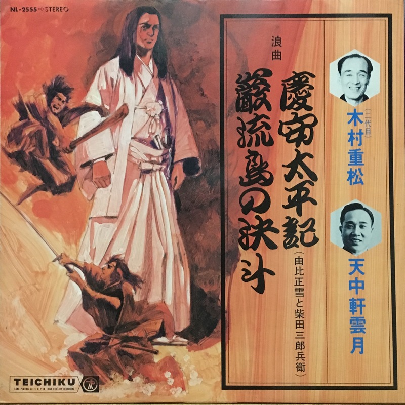 | 慶安太平記(由井正雪と柴田三郎兵衛)/巌流島の決斗 | 二代目木村重松/四代目天中軒雲月 | 木村美津江/平松加代 | 監修:中川明徳/脚本:中川明徳 | テイチク | LP | NL-2555 | 1 | 所蔵 | 未デジタル化 | 詳細 | |||