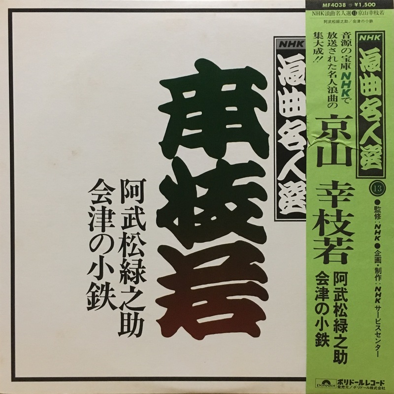 | NHK浪曲名人選13 | 阿武松緑之助/会津の小鉄 | 初代京山幸枝若 | 藤信初子.小池菊江 | ポリドール | LP | MF4038 | 1 | - | 所蔵 | 未デジタル化 | 詳細 | ||