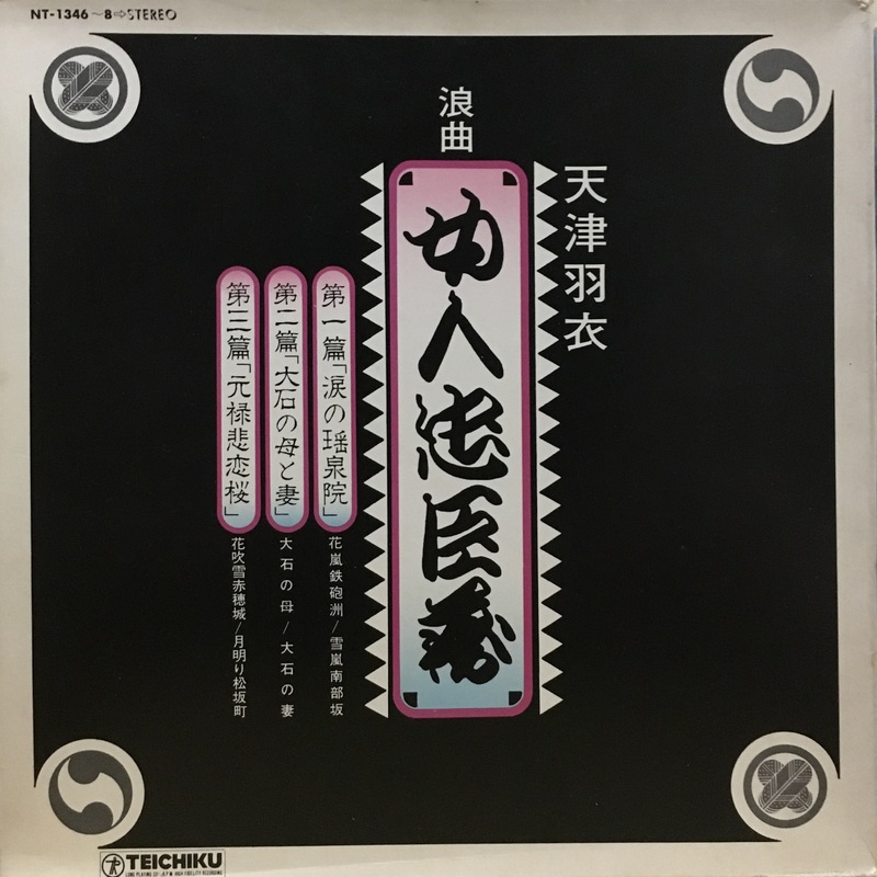 | 女人忠臣蔵 | 第一篇「涙の瑶泉院」 花嵐鉄砲洲/雪嵐南部坂 | 天津羽衣 | 広沢美喜枝 | 作:吉野夫二郎.音楽:久慈ひろし | テイチク | LP | NT-1346 | 1/3 | 所蔵 | 未デジタル化 | 詳細 | ||