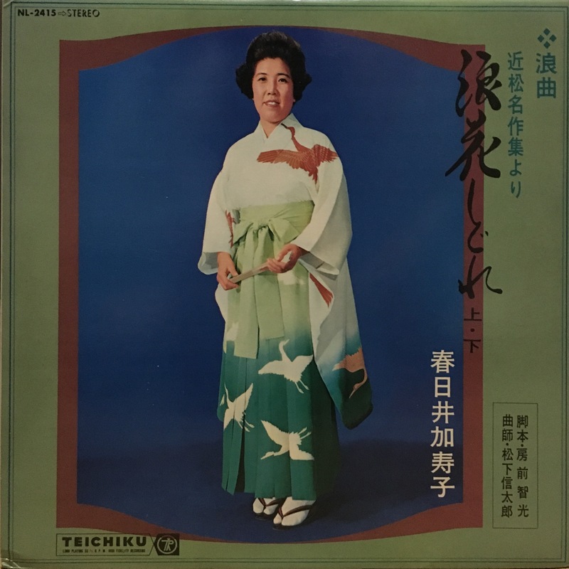 | 近松名作集より 浪花しぐれ | 春日井加寿子(二代目春日井梅鶯) | 松下信太郎 | 脚本:房前智光 | テイチク | LP | NL-2415 | 1 | - | 所蔵 | 未デジタル化 | 詳細 | ||