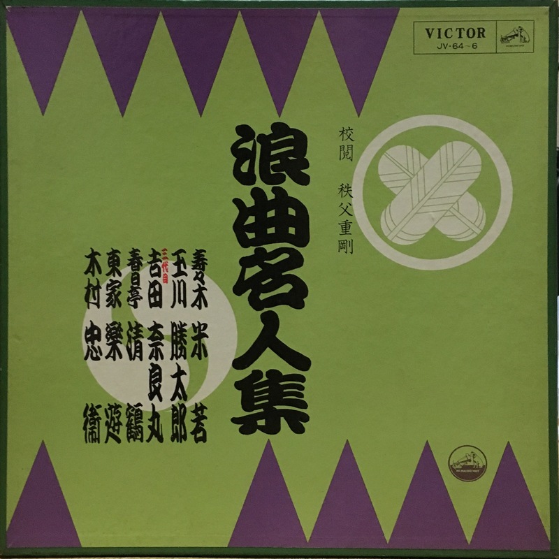 | 浪曲名人集(3) | 小松嵐/南部坂雪の別れ/河内山宗俊/夕立勘五郎 | 東家楽遊/木村忠衛 | 不詳 | VICTOR | LP | JV-66 | 3/3 | 1962 | 所蔵 | 未デジタル化 | 詳細 | ||